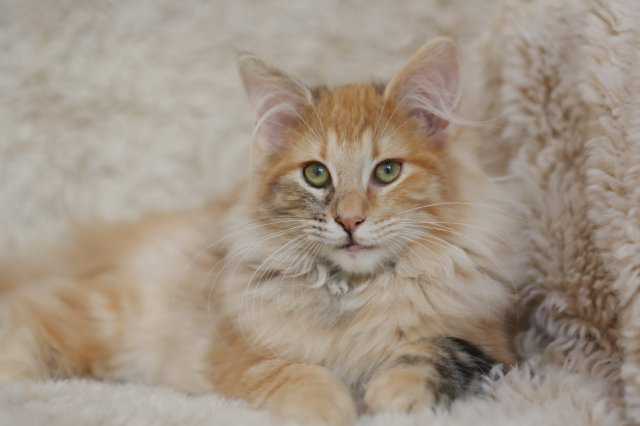 Rhapsody was part of our unbelievable litter of 12 (!) kittens. She is one of those very special looking silver tortie girls of her father D* Valentino av Härjedalen with a very high amount of red .