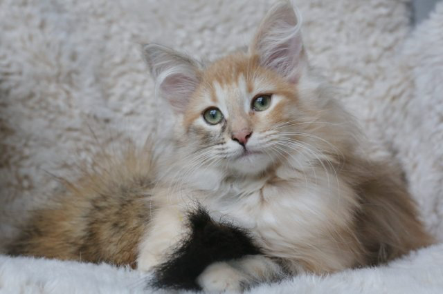 | Color | Black silver tortie tabby blotched, fs 22 |